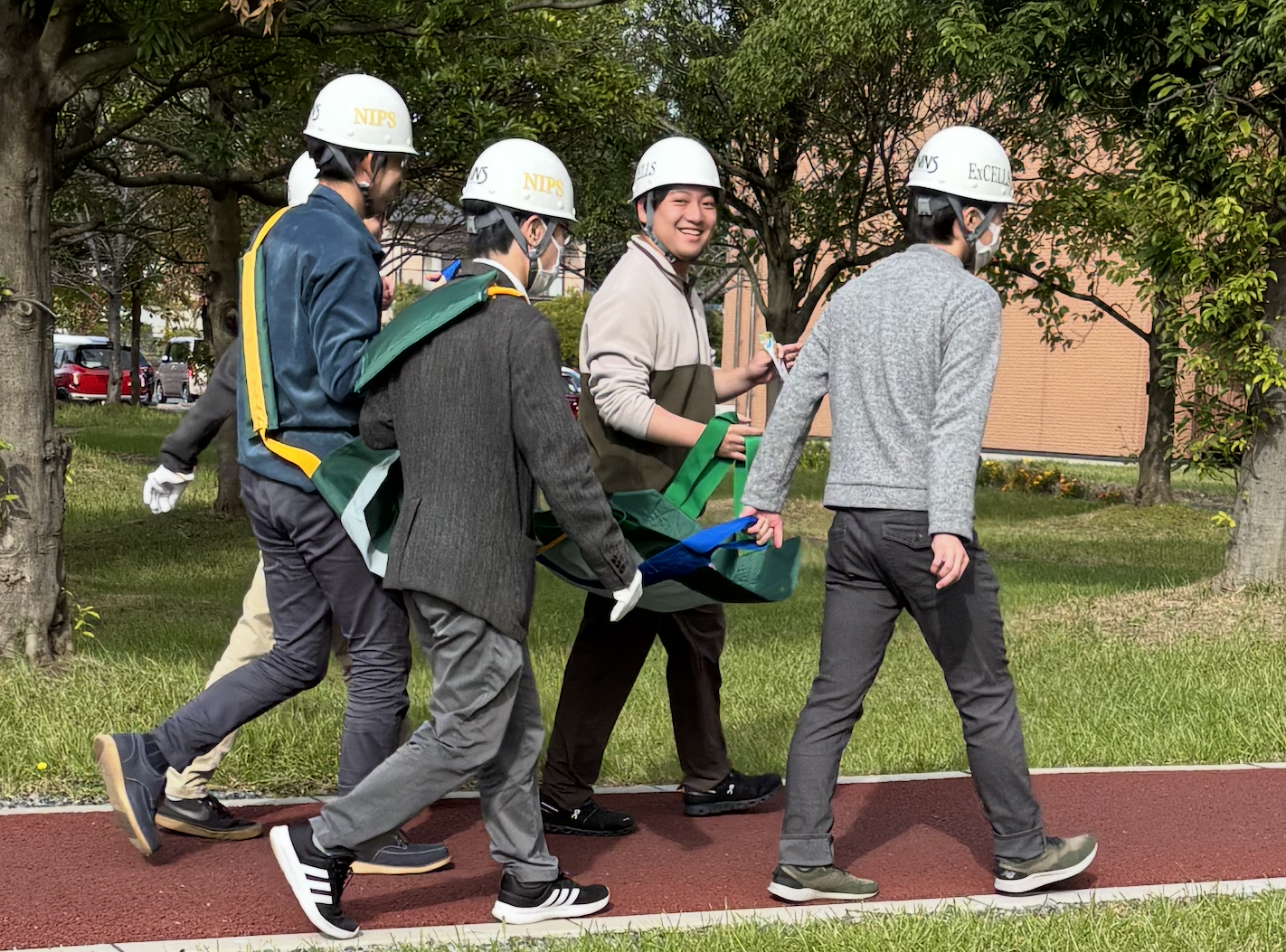 A snapshot from the disaster preparedness drill conducted on the Yamate Campus.